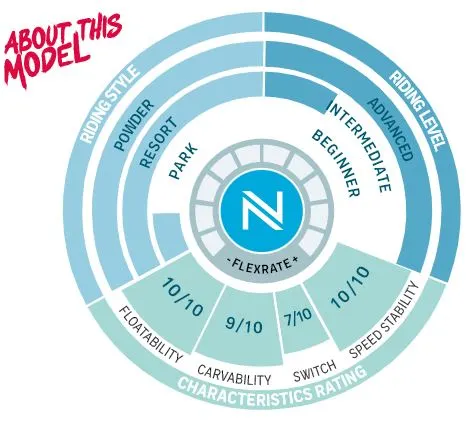 De N-Tech 2.0 is een verbetring van de originele N-Tech. Met verschillende flex tussen bindingen en naar je nose en tail zorgt dit voor een unieke ervaring. De Freeflex 3.0 tech zorgt er voor dat er zo min mogelijk hout en fiberglass richting nose en tail lopen om het gewicht van het board laag te houden en wél extra drijfvermogen in de poeder te hebben.